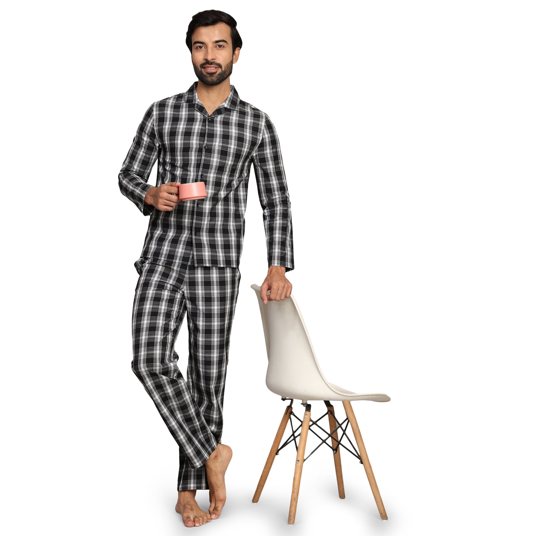 B STORIES Men's 100% Cotton Full Sleeve PJ Set – Classic Shirt & Pajama Pant