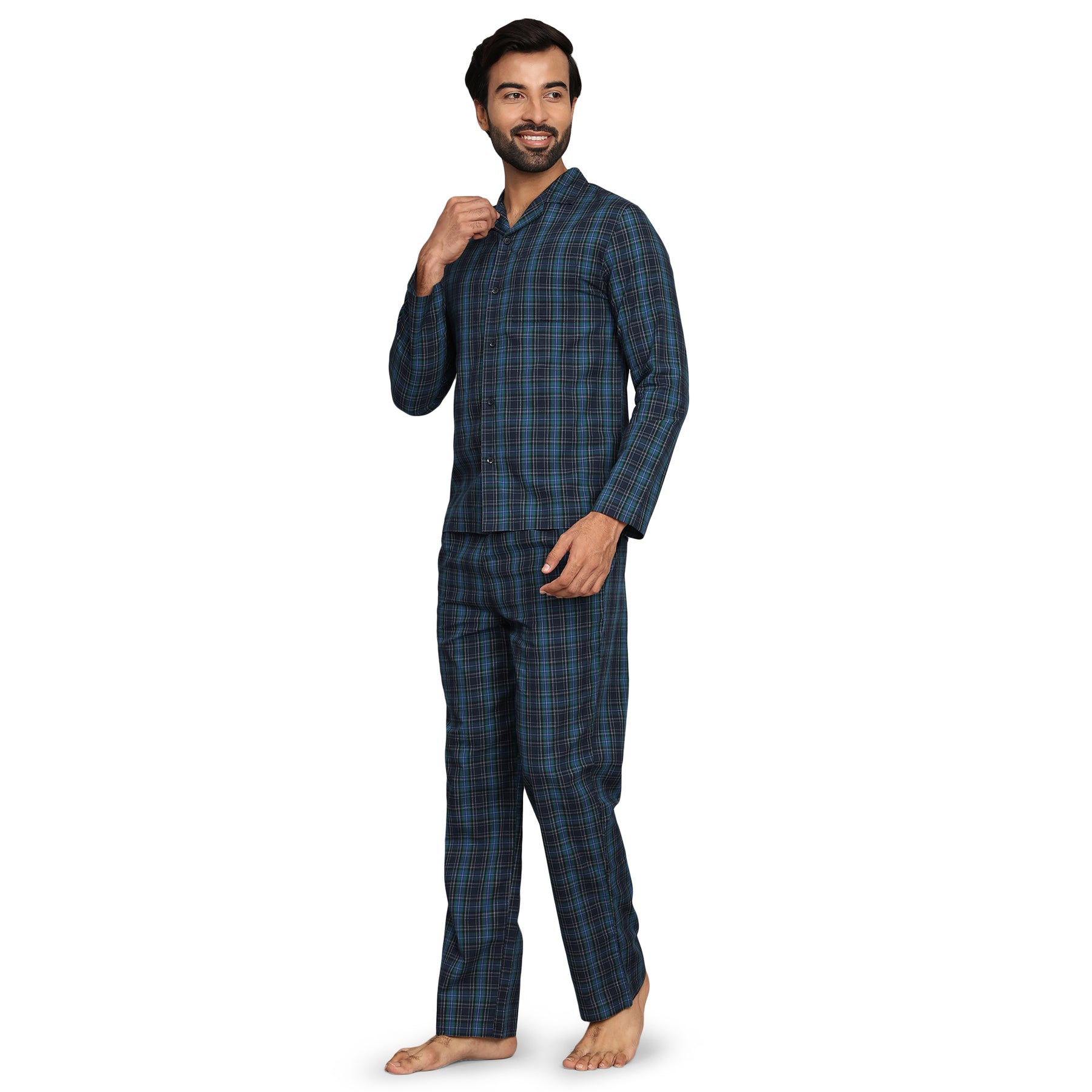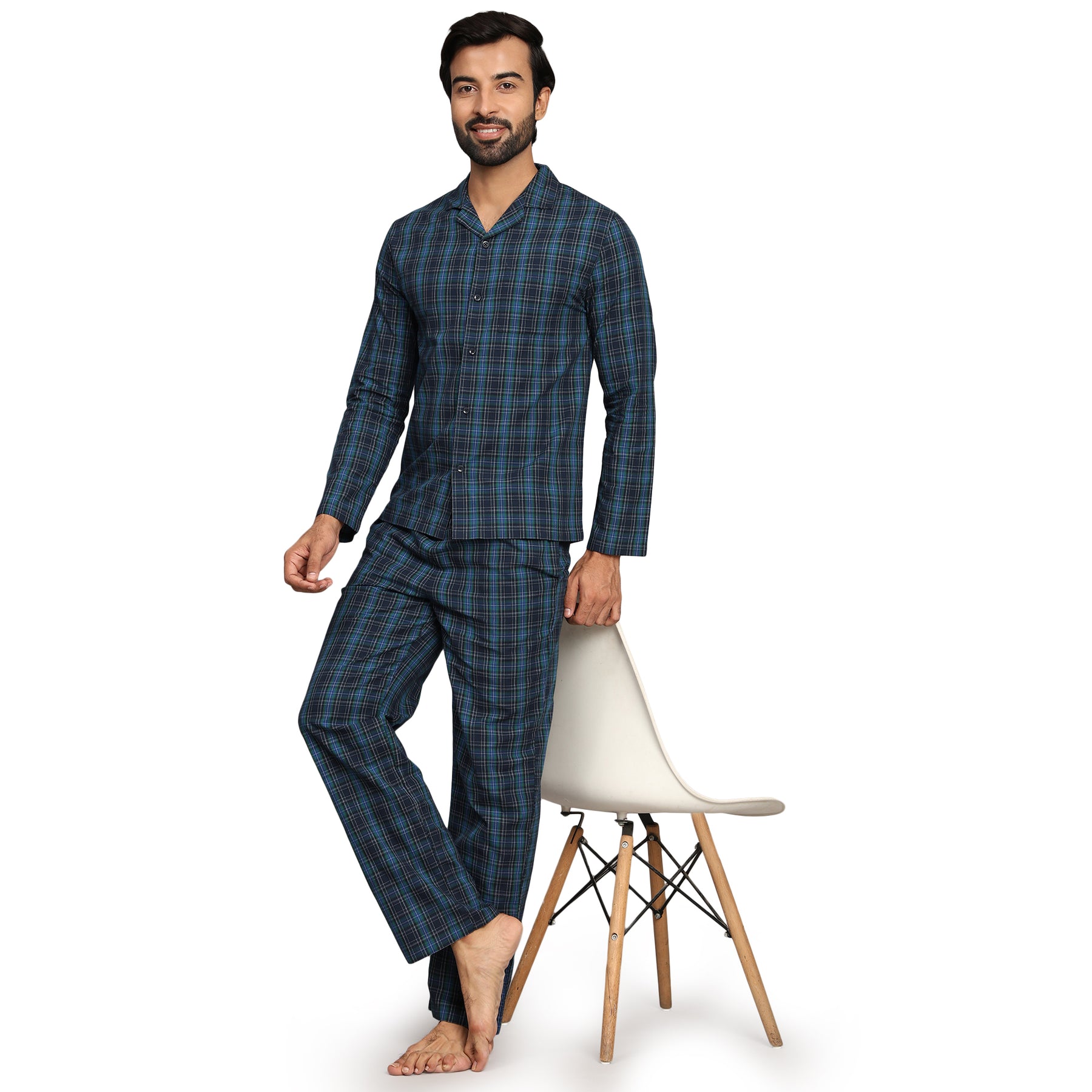 B STORIES Men's 100% Cotton Full Sleeve PJ Set – Classic Shirt & Pajama Pant