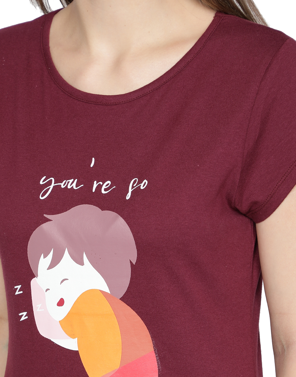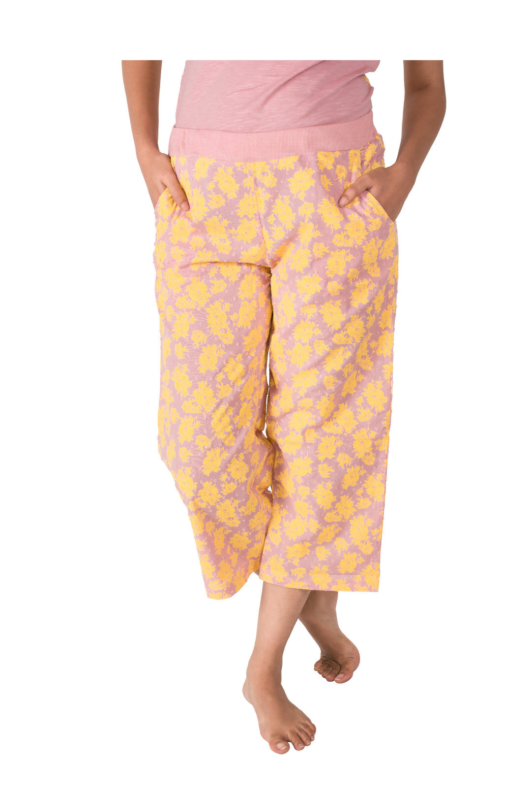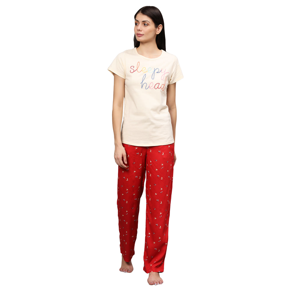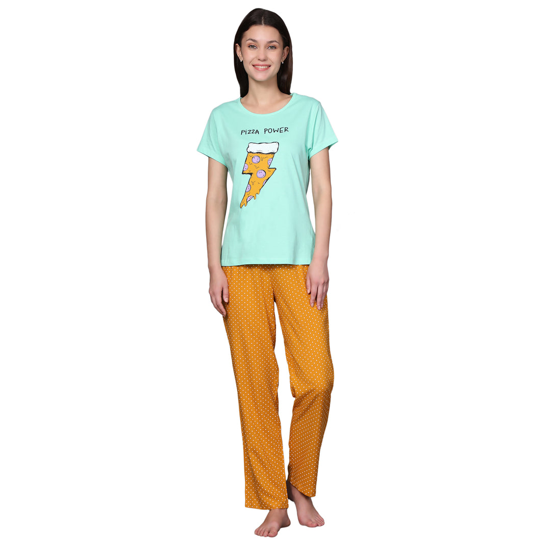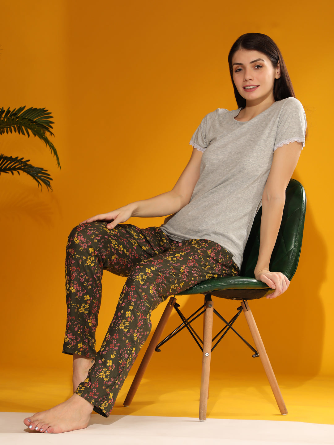 Nightwear Set - Aqua Blue Cherry Blossom Print Checked Pant