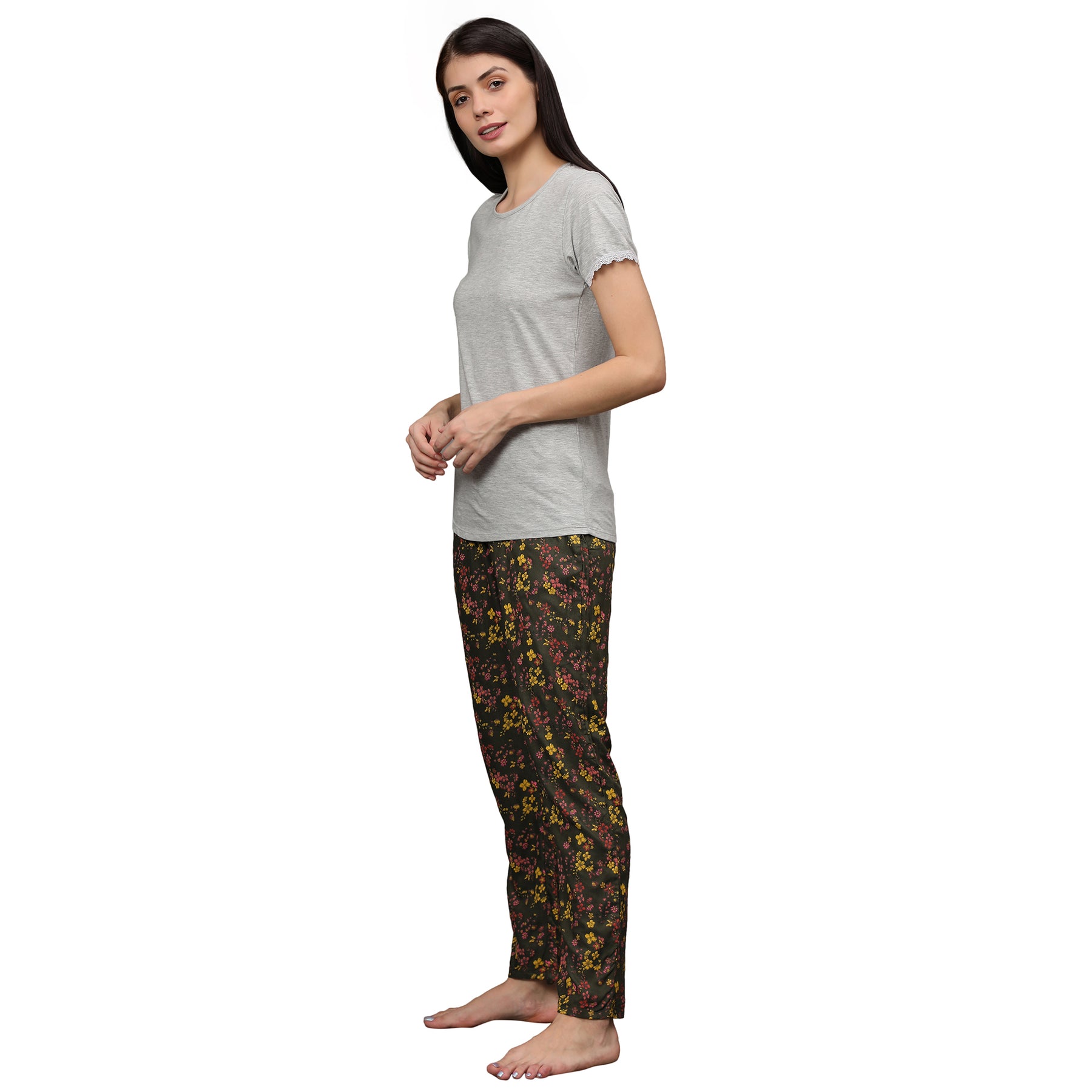 The half-sleeve round-neck top and easy-fit pajama pants ensure free movement throughout the day and night.