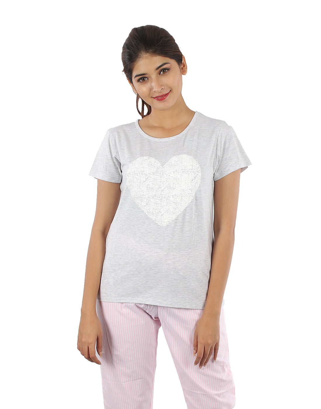 The half-sleeve round-neck top and easy-fit pajama pants ensure free movement throughout the day and night.