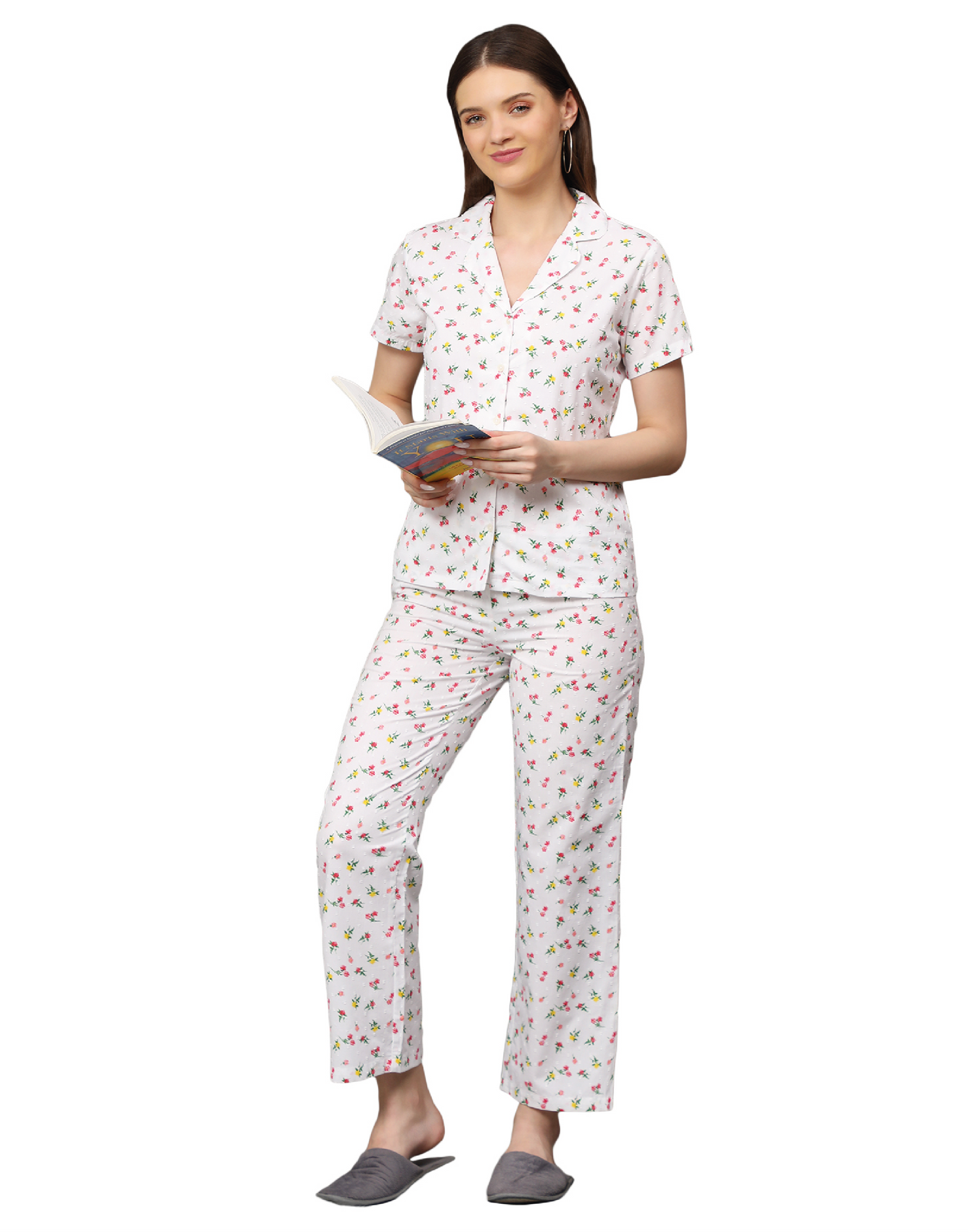 Nightwear Set - White Disty Floral Print