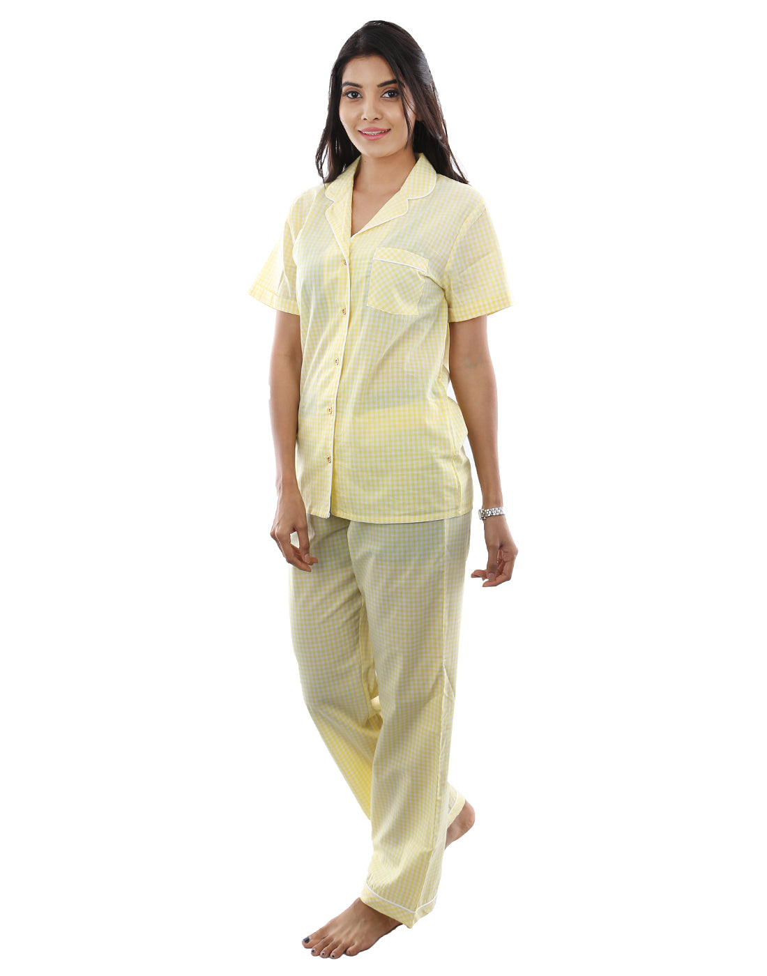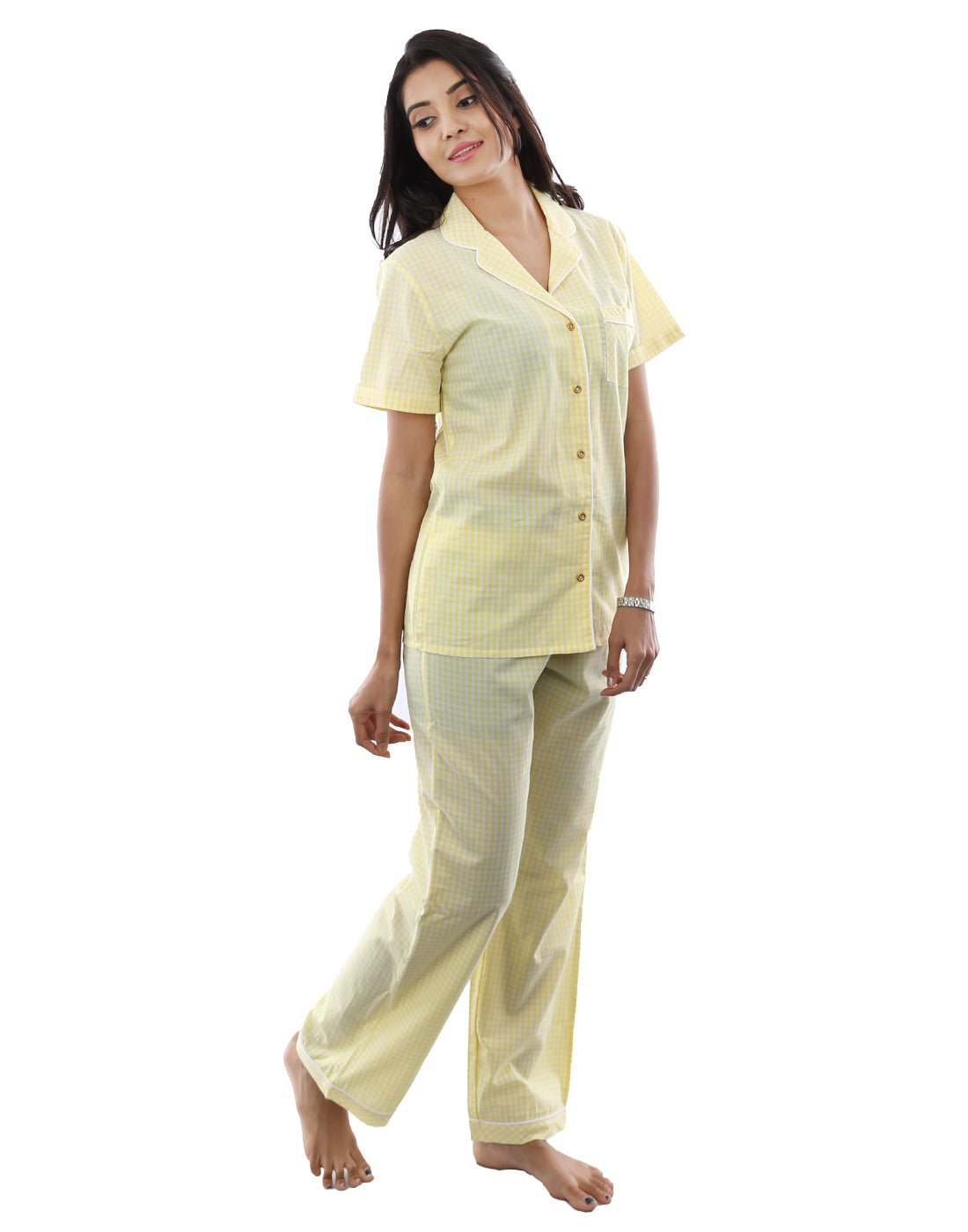 Nightwear Set -  Yellow And White Checked